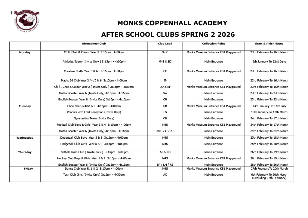 The majority of Extra Curricular After School Clubs are charged at £1 per session and can be booked via the Arbor app. A small number of invite-only clubs (e.g. tutoring, representing a school team) are free of charge.